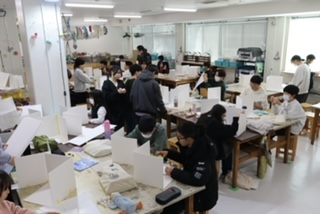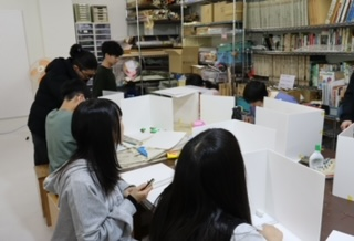 アートコモンズは以前図書室だった場所です。一新して美術室と工芸室ができました。奥には廊下を挟んで技術室が広がります。今日は美術室で3年美術の授業がありました。3年生はトイレの模型を作っているそうです。完成が楽しみですね ♪